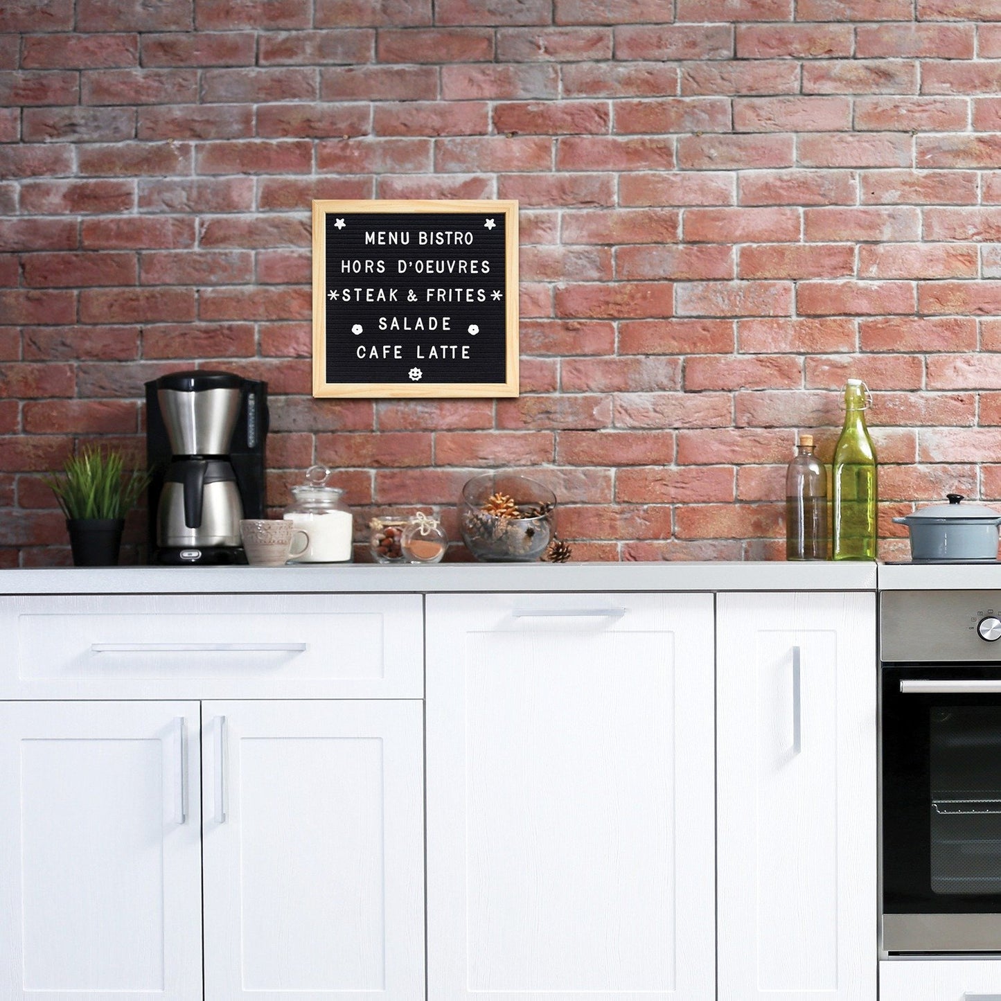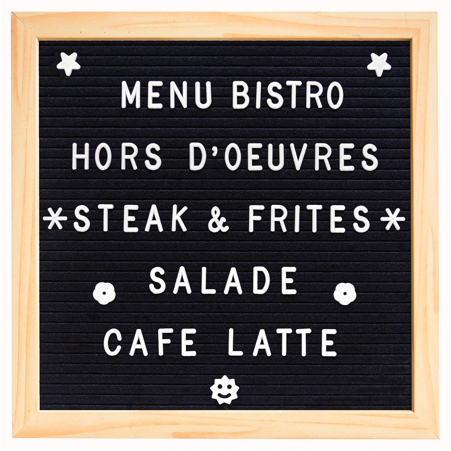 Transform your home kitchen into an intimate small restaurant by announcing the daily special on this Gourmet By Starfrit Bistro Felt Message Board! The board is black with a solid wood frame. A felt storage bag holds the included 250 letters, numbers, and symbols. It's versatile—use it anywhere in the house or at work!