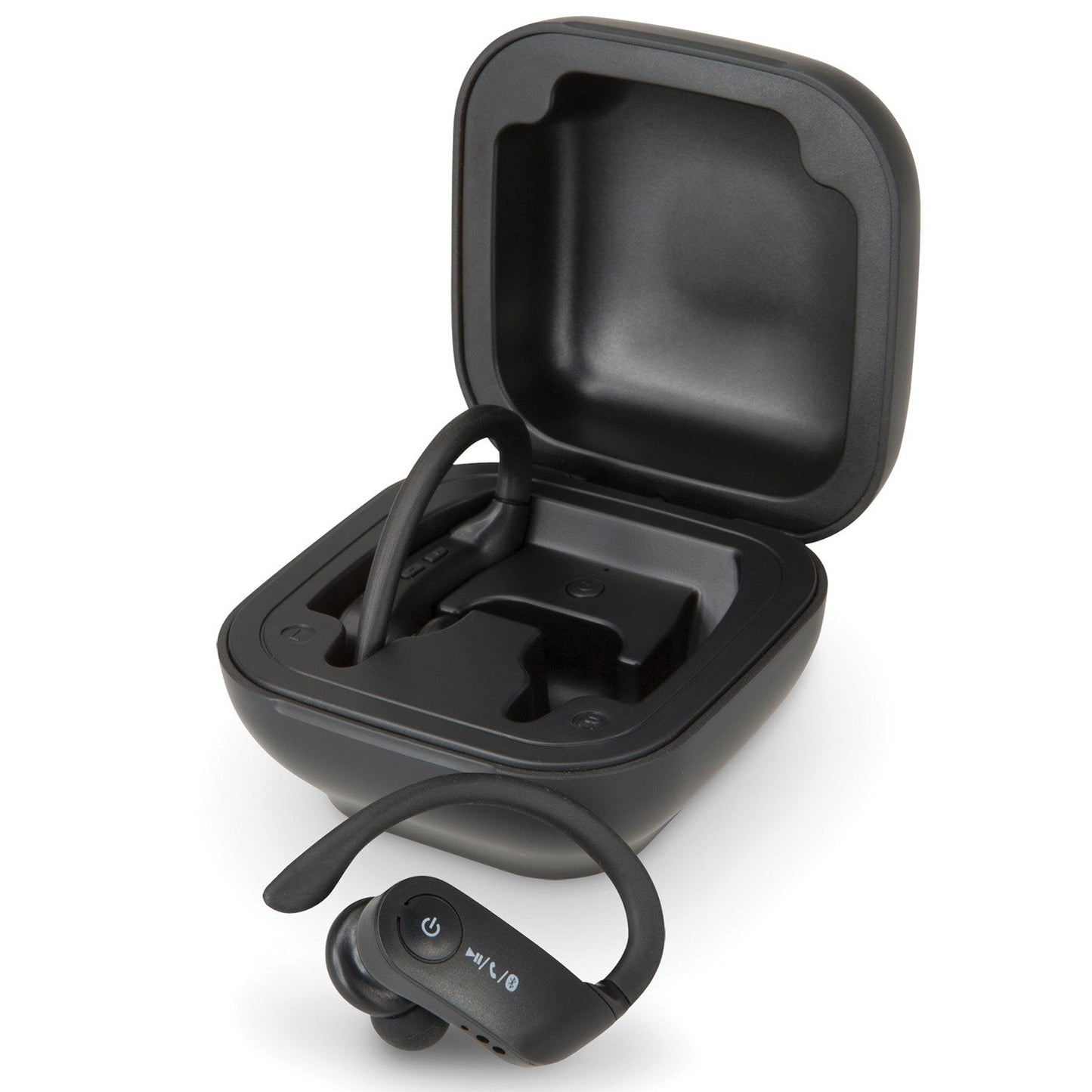 Leave wires in the dust with the iLive Truly Wire-Free Earbuds. With no messy cords to restrict your movement or get in your way you can experience true wireless freedom in style. The sweat-resistant and seamless design combine to give you the ideal ratio of performance and comfort. The included recharging case not only protects the earbuds while you stow them away, but can also recharge your earbuds fully between your longest listening sessions. The right and left earbuds are paired together right out of the box, so all you have to do is connect via Bluetooth to your favorite device.
