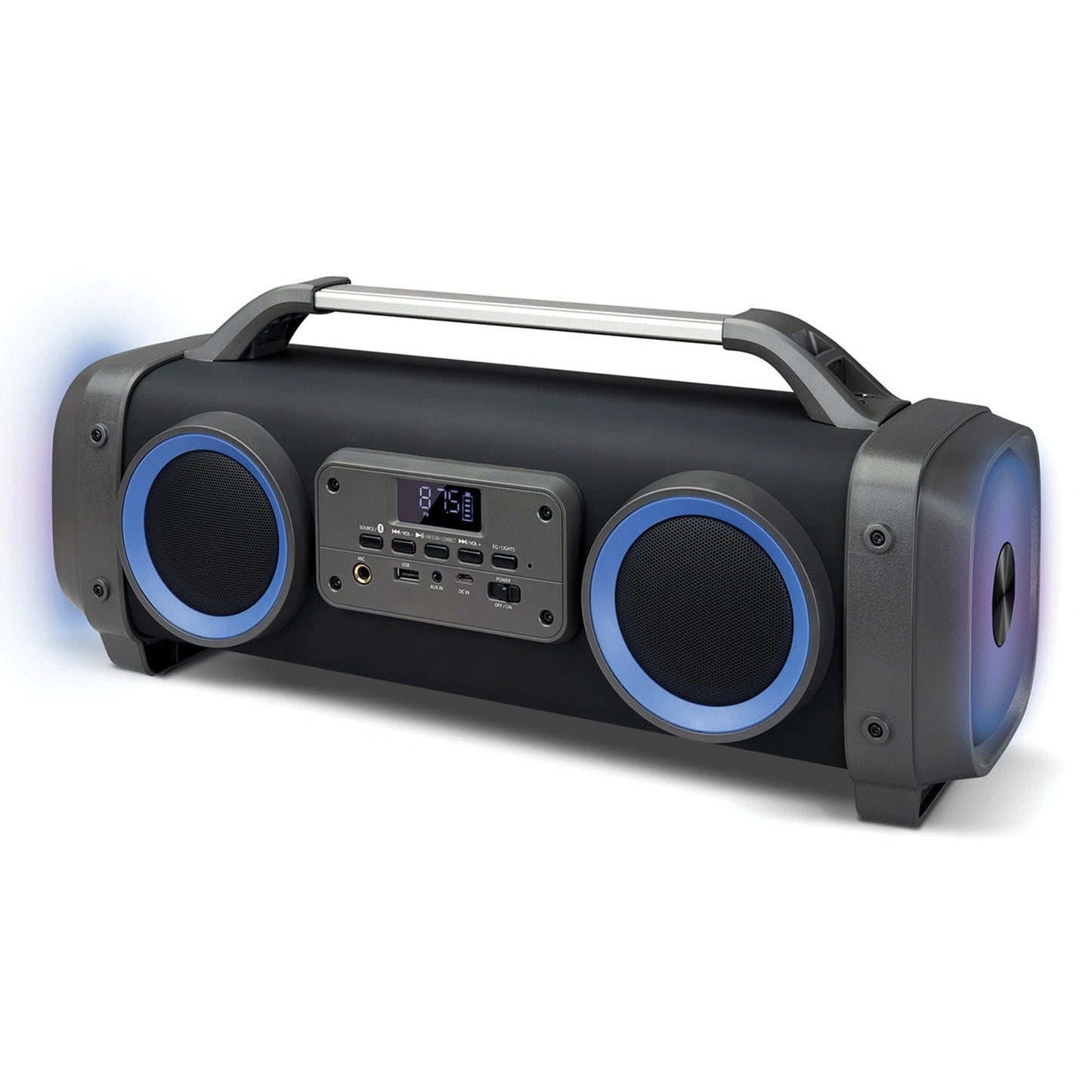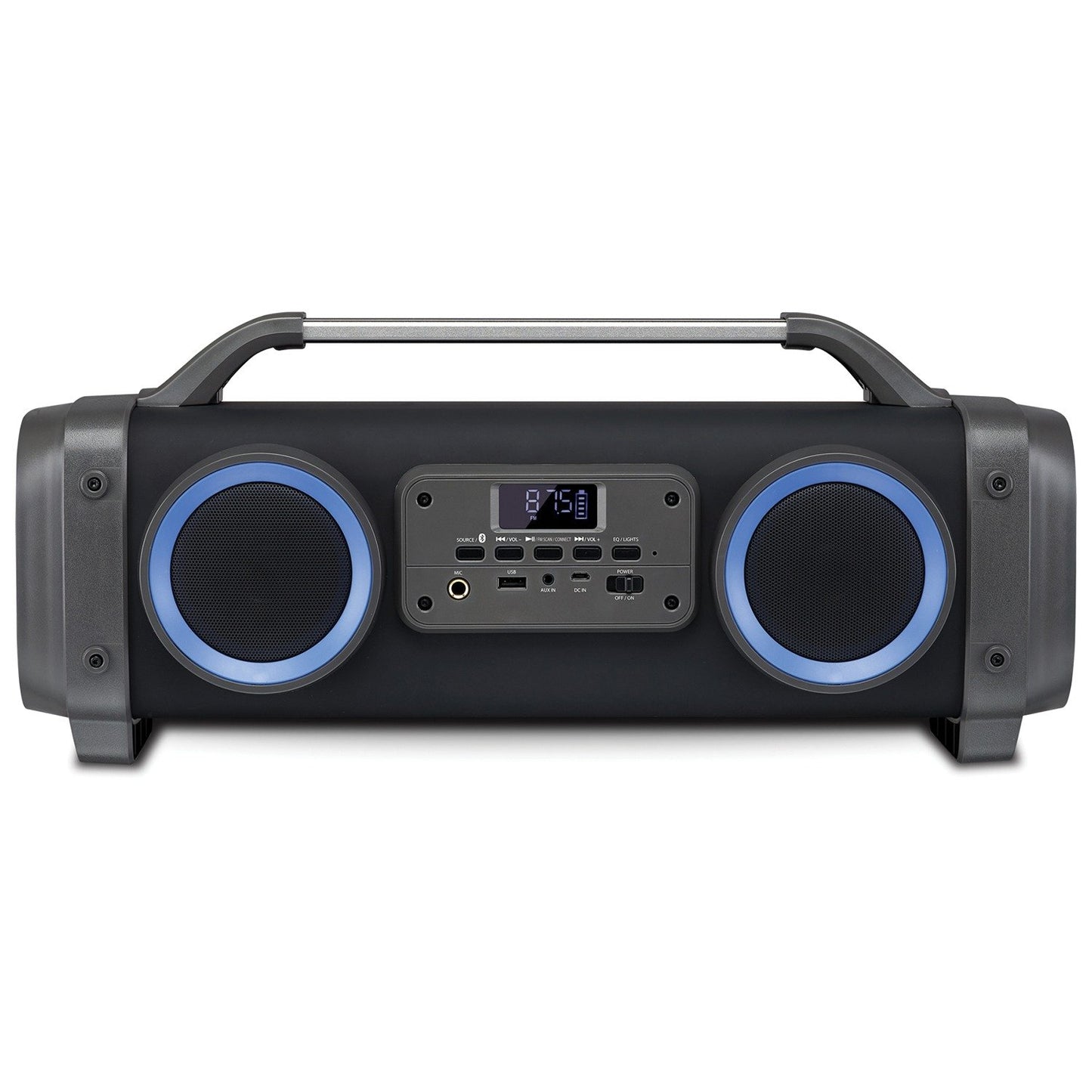 Turn up the style and the bass with this boombox! The iLive High Performance Bluetooth Boombox has a 4-speaker configuration and Bluetooth connectivity combined to give you an unrivaled listening experience. Pair 2 units together and pump it up for an even more expansive sound. The portable design include, a built-in handle and a built-in rechargeable battery so you can take this boombox with you anywhere.