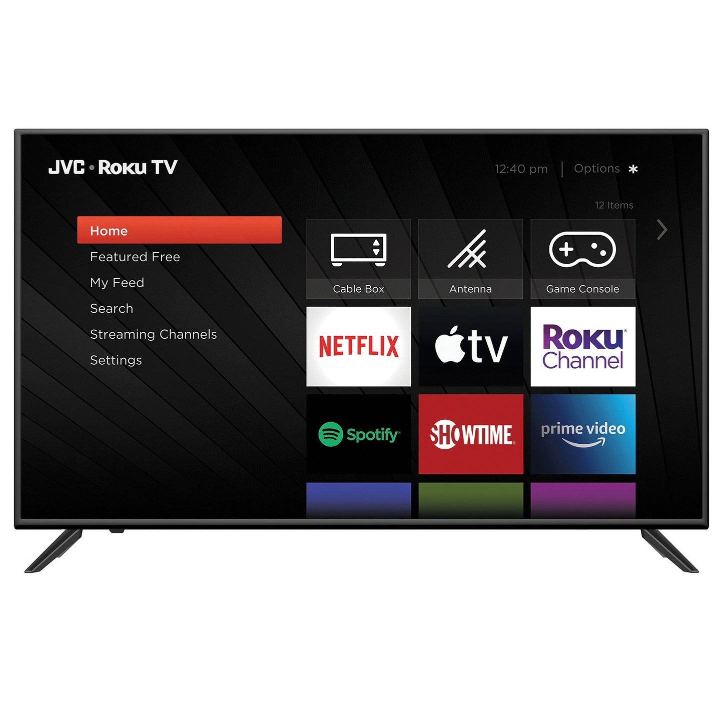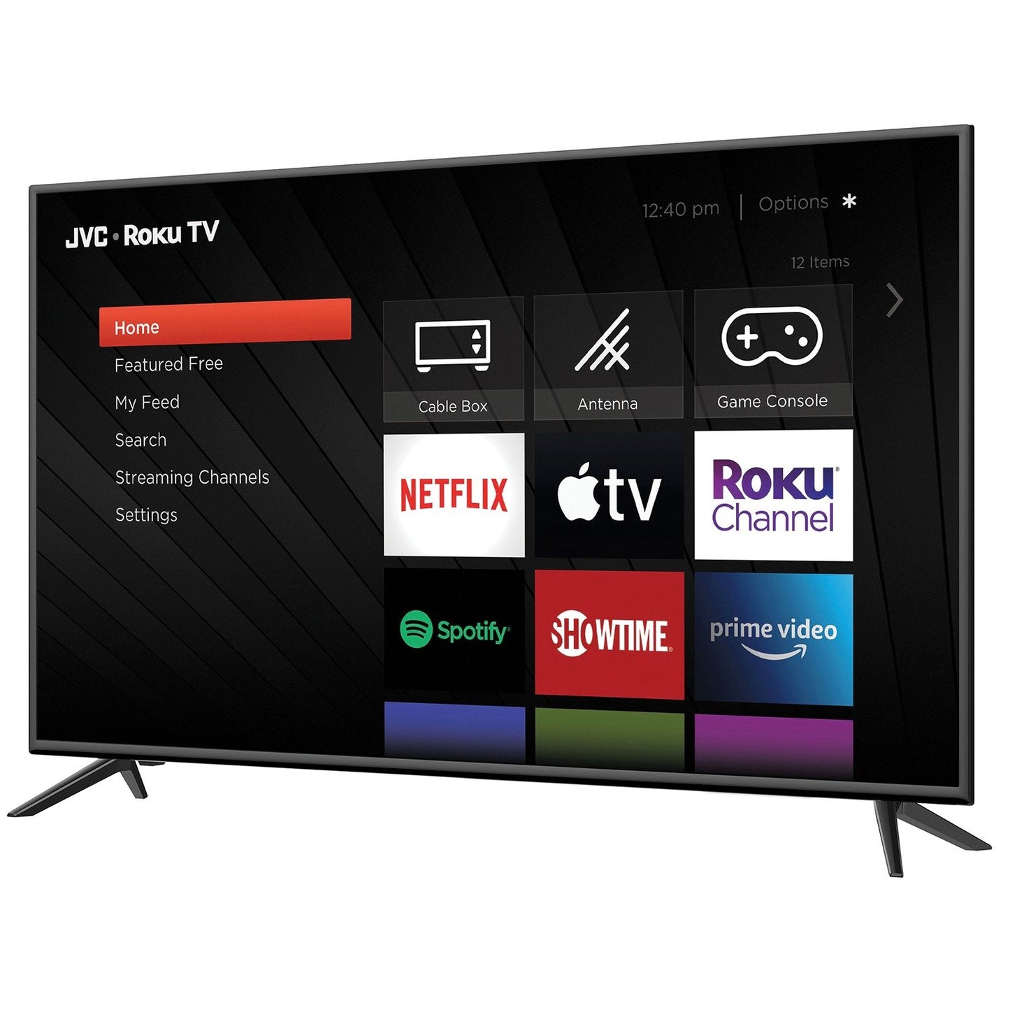 Enjoy stunning 4K UHD video quality, smart TV features, and Roku streaming on a 43 In. JVC TV! The LT-43MAR595 Roku 4K UHD Smart TV can stream 500,000+ movies and TV episodes from a simple, intuitive interface. Built-in WiFi also lets you stream shows, movies, games, and more with integrated apps. There's even an Ethernet port if you want to hook directly to your Internet. And 3 HDMI ports provide easy ways to connect gaming consoles, cable/satellite boxes and more.