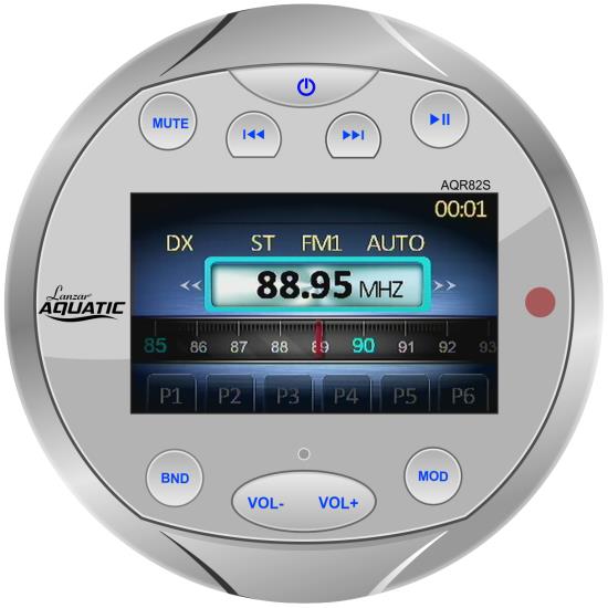 Lanzar AQR82S Waterproof Bluetooth Marine Digital Stereo Radio MP3 AM/FM Silver