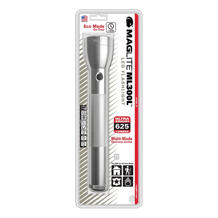 Mag-Lite (Ml300L) Led 3-Cell D Flashlight, Silver, Blister Pack