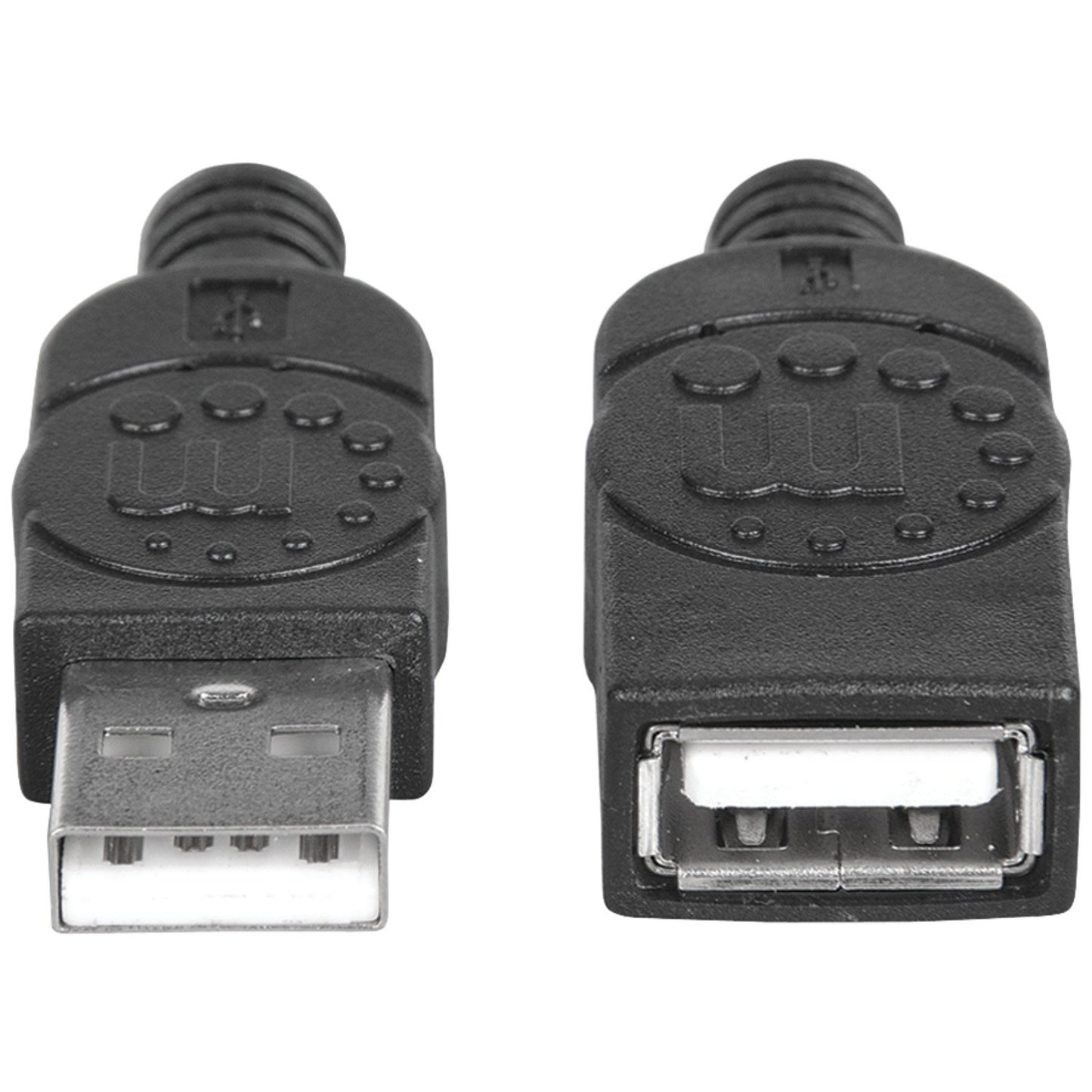 Manhattan Hi-Speed A Male to A Female USB Extension Cables easily lengthen connections between computers and USB-powered peripherals, up to a maximum of 16 ft. Ideal for use with printers, keyboards, external enclosures and an expanding assortment of digital devices, this 10 ft. Manhattan 393850 USB 2.0 Extension Cable is engineered and constructed of quality materials that support data transfer rates up to 480 Mbps to deliver dependable, error-free transmissions over longer distances. Full foil and braided shielding, gold-plated contacts and molded boots with strain relief help assure maximum conductivity for the fast connection of USB-enabled devices with reduced EMI interference and minimal data degradation.
