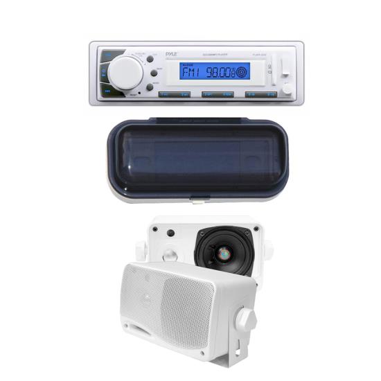 Marine In-Dash Receiver w/ SD/USB 3.5'' 200 Watt Weather Proof Mini Box Speakers