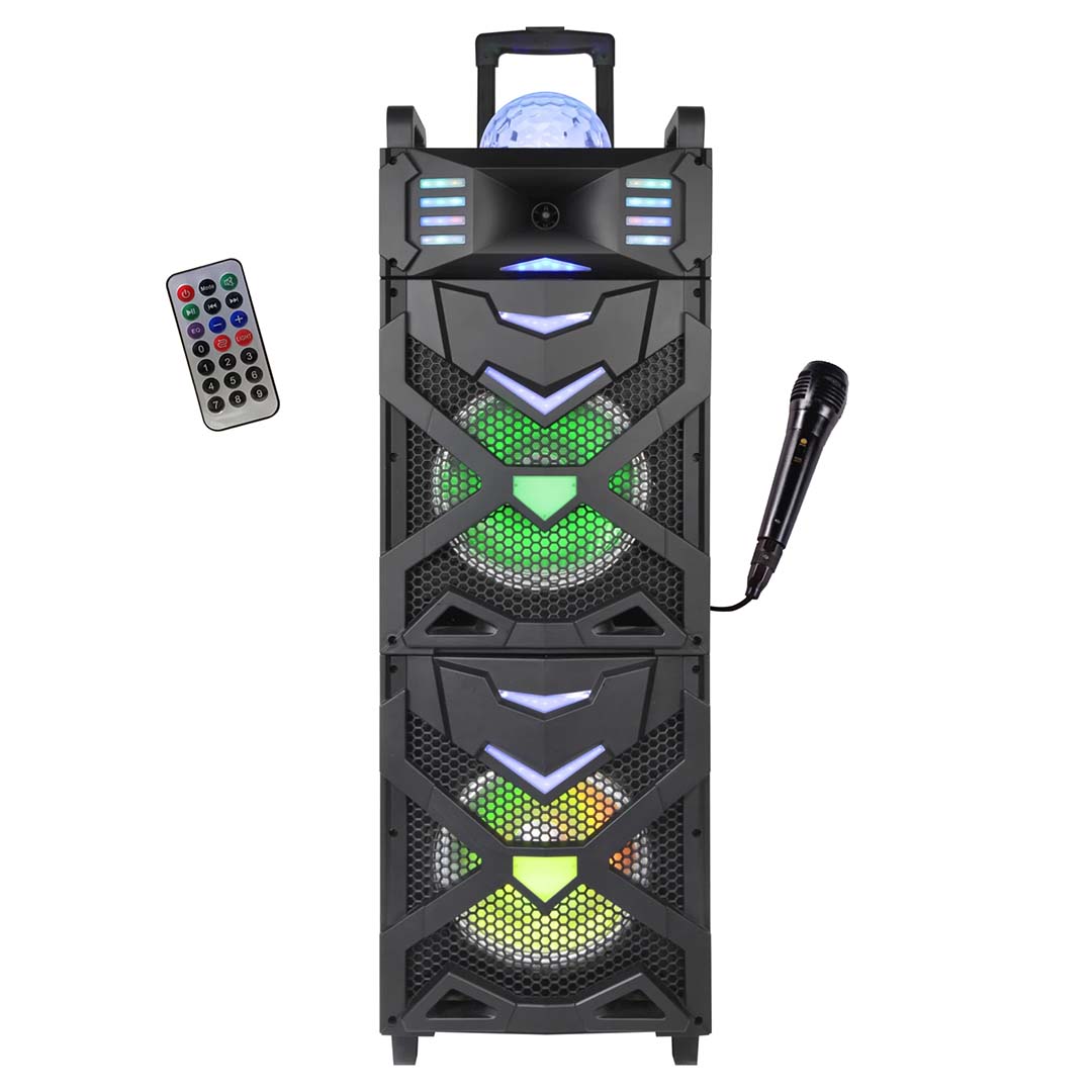Maxpower Rechargeable Bluetooth Speaker Dual 10 Woofers With Disco Lights Black