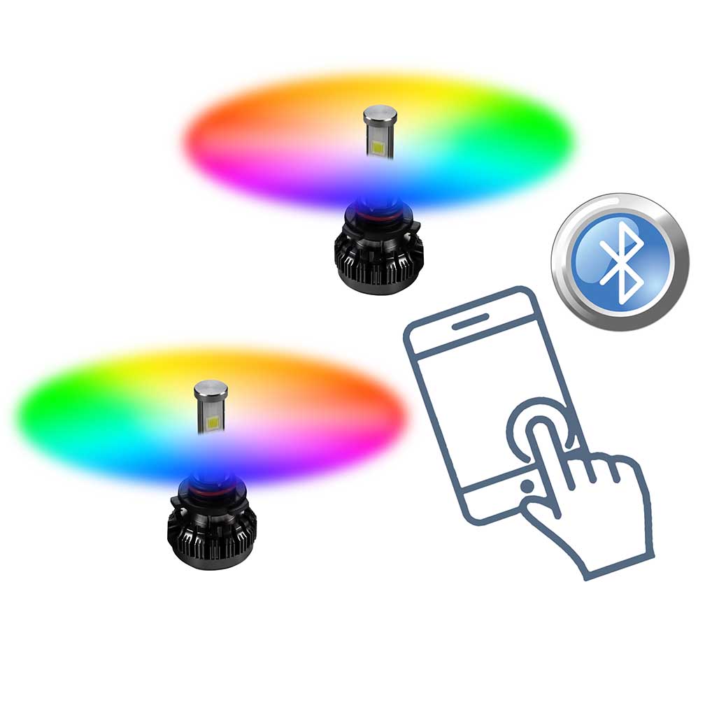 MaxPower H4 RGB 6000K LED Headlights Controlled By Smart Phone Via Bluetooth