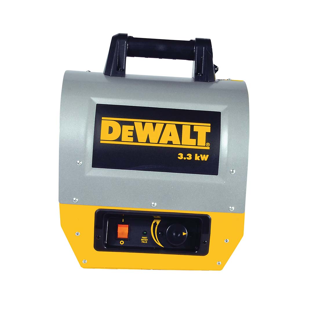 the Mr. Heater – Dewalt (dxh330) Thermostatically Controlled Electric Heater Operates At 3300 Watts On A 240v Single Phase Circuit. Constructed With Dual Coil Supports Oversized Ergonomic Handle And Very Durable Jobsite Construction.