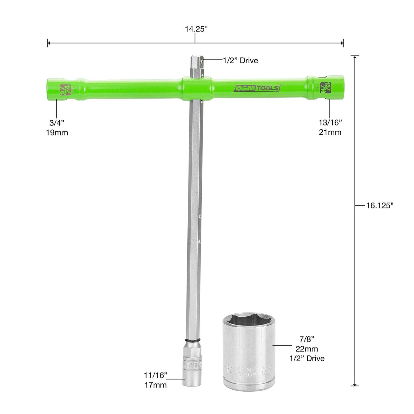 Socket Sizes: 11/16" (17 mm), 3/4" (19 mm), 13/16" (21 mm)