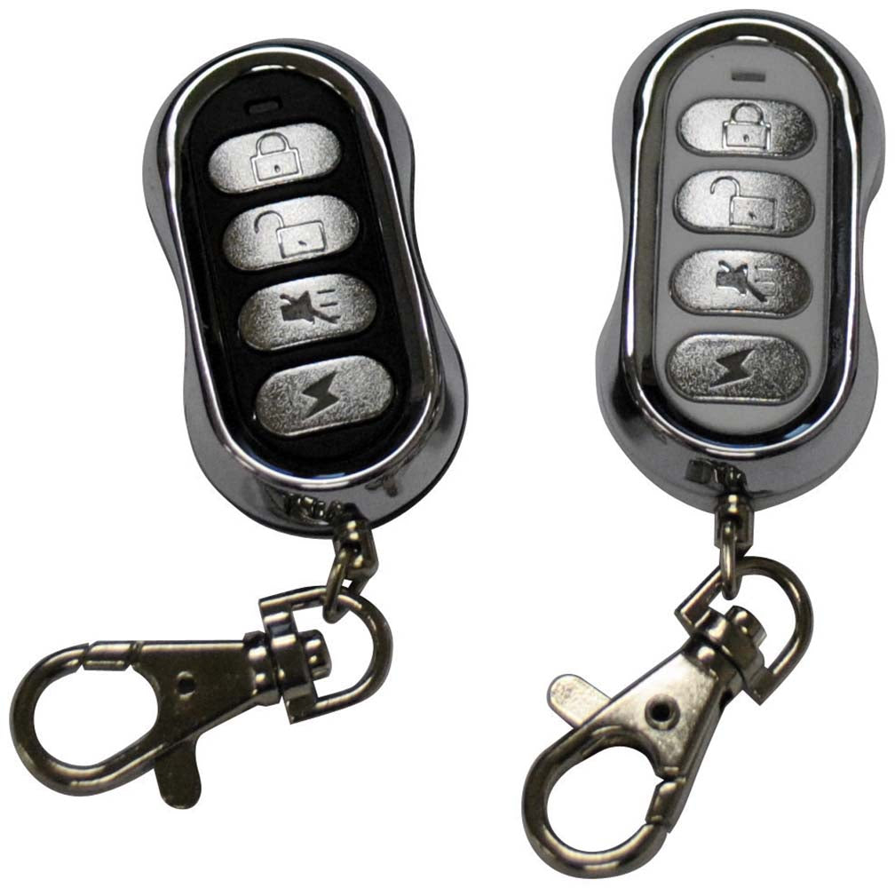 Two 4-Button Remotes: One Is Black W/Chrome Trim And The Other Is White W/Chrome Trim