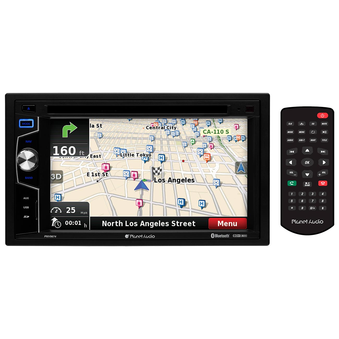 Planet 6.2” Double DIN Fixed Face Touchscreen DVD Receiver with Navigation, Bluetooth, USB/SD Inputs and Remote