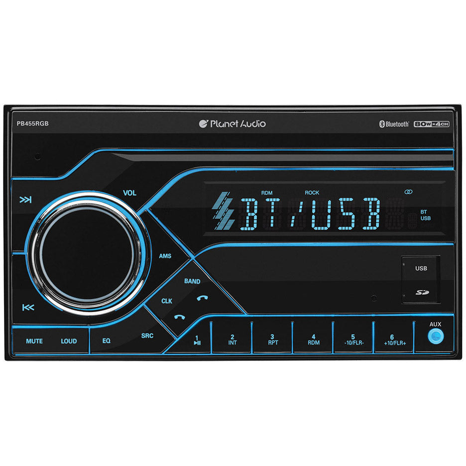 Planet Audio PB455RGB DDin Digital Media Receiver AM/FM Bluetooth USB Front Aux