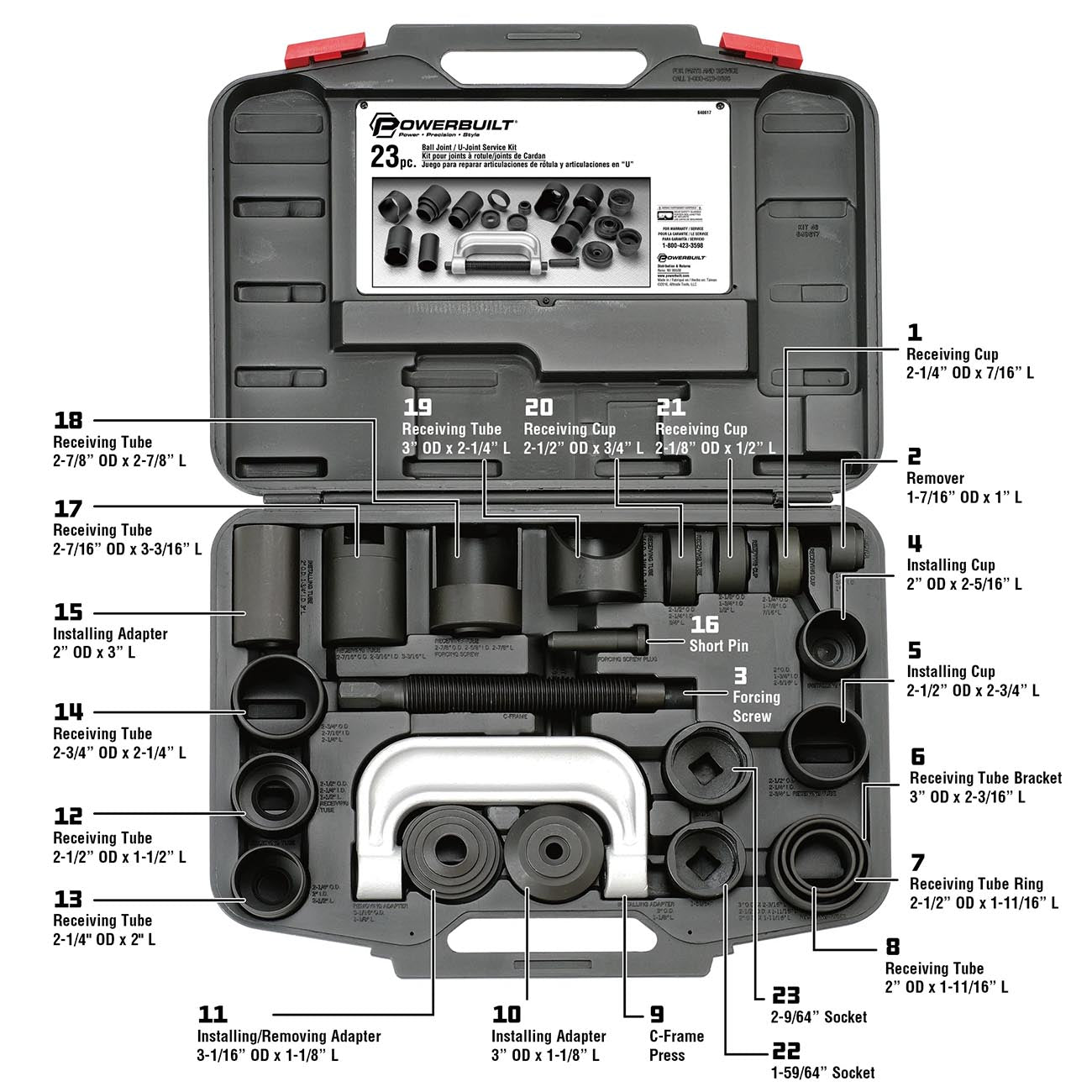 safe: The Powerbuilt 23 Piece Ball Joint/u Joint Service Set Is Designed For Safe, Efficient Removal, And Installation Of “press Type” Ball Joints