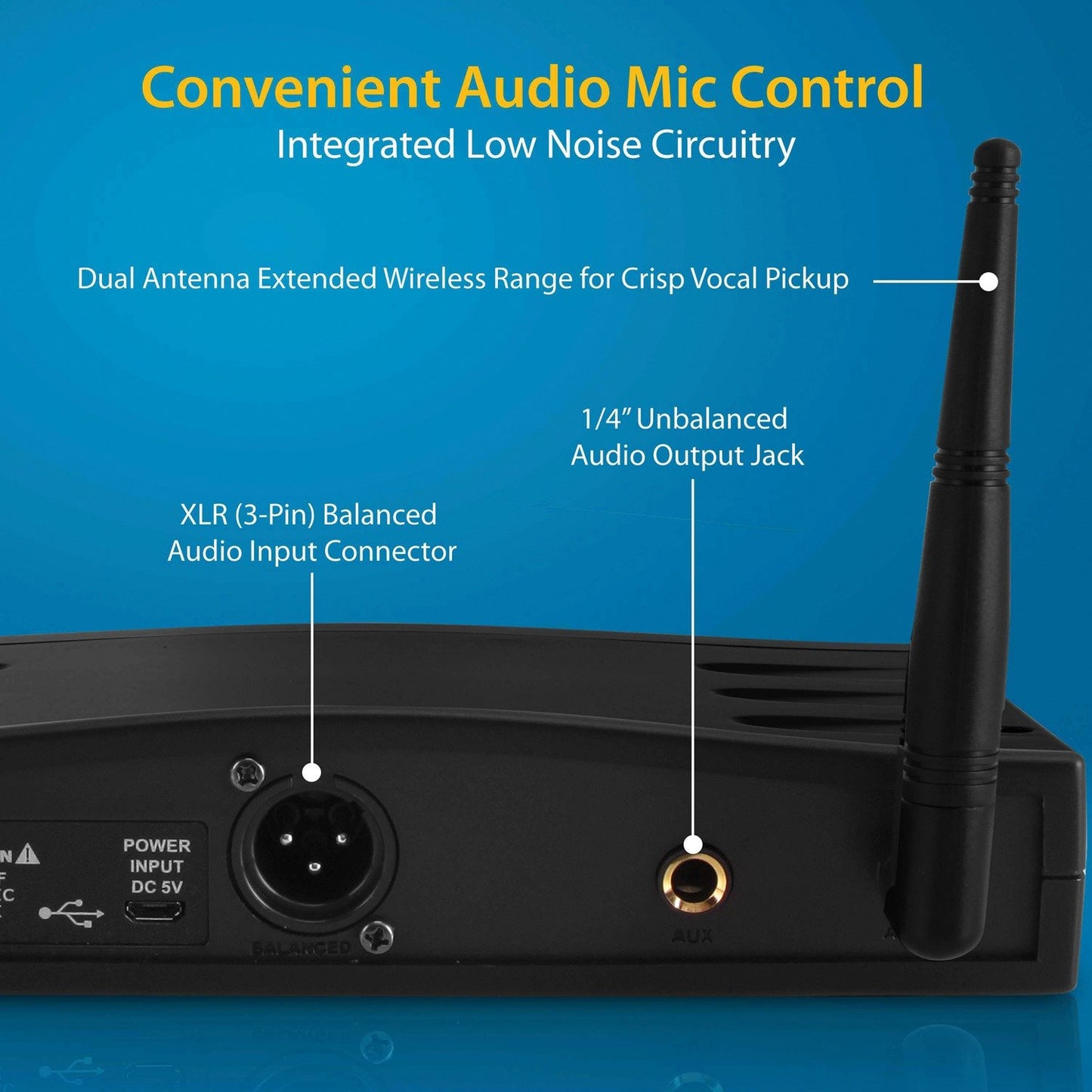 Looking for an easy to set up and operate wireless microphone system? The Pyle Compact UHF Pro Wireless Microphone System is a USB powered single channel system with a choice of 16 frequencies that comes with a wireless handheld microphone. This is an ideal choice for home, office, and business use.