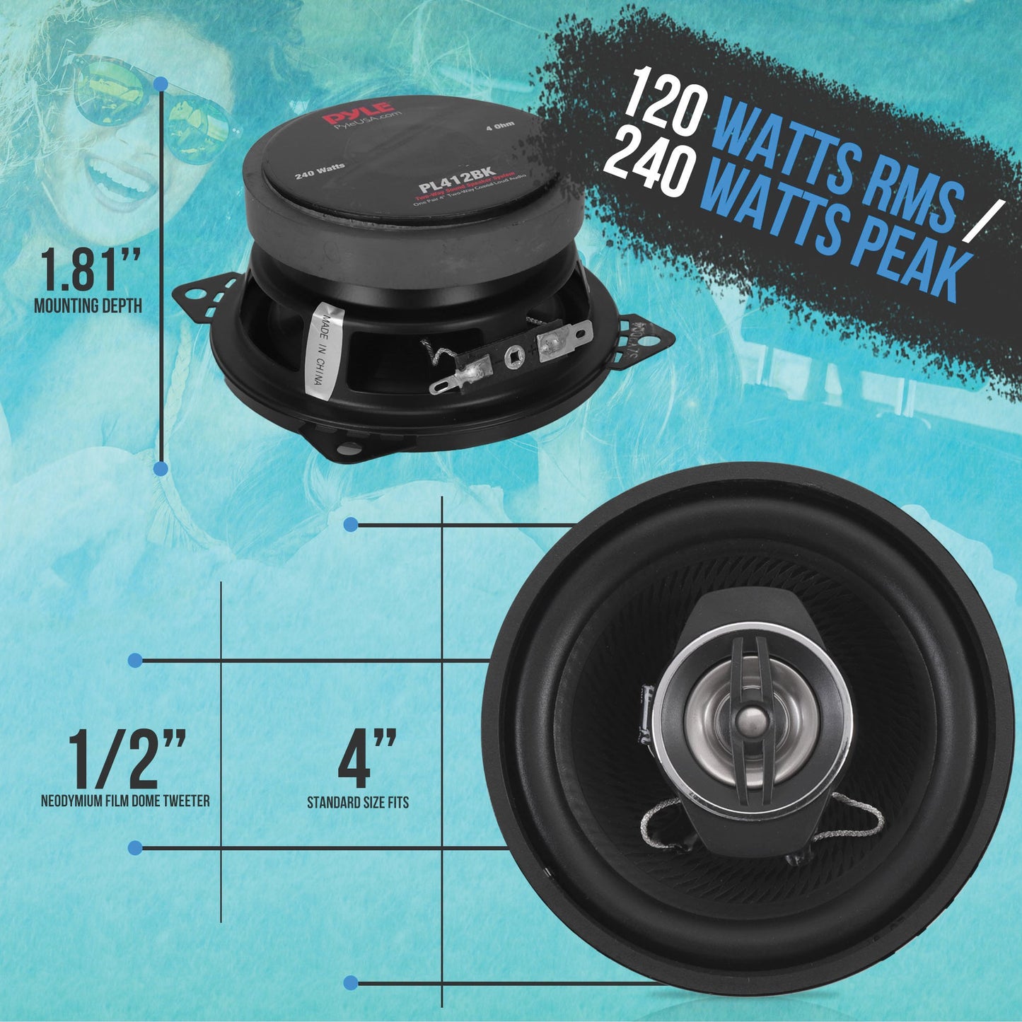 PYLE PL412BK 4-Inch 240-Watt-Max 2-Way Coaxial Speakers