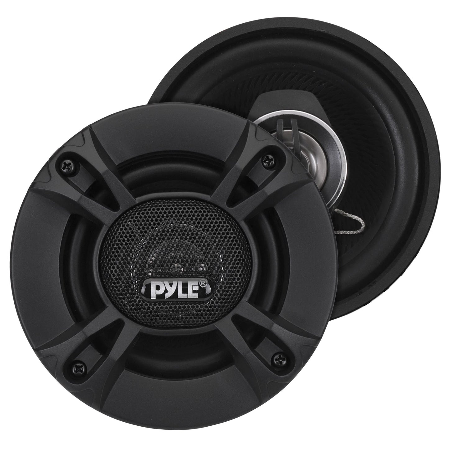 Looking to replace your old 4 in. car speakers? This pair of Pyle 4 In. 2-Way Coaxial Speakers have a peak power of 240 watts, 120 watts RMS, with a 4 ohm impedance that will produce high-quality sound. Play your favorite tracks as loud as you want—and with style. These clean-cut automotive speakers with grilles boast black, high-quality poly-injection speaker cones and produce powerful audio with their 20 oz. magnet structure. The 2-way coaxial speakers use a 3/4 in. neodymium film dome tweeter in each speaker to ensure low distortion. The voice coils are dual 3/4 in., high-temperature ASV to resist corrosion. Designed with non-fatiguing rubber suspension to keep equipment safe, these vehicle speakers are door- and side-panel mount compatible. They fit most audio systems for cars, boats, motorcycles, or RVs. Included are the necessary cables, speaker grilles, and mounting hardware for a quick and hassle-free setup.