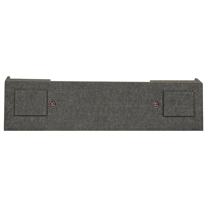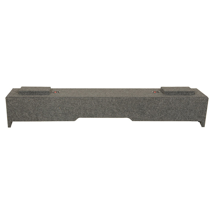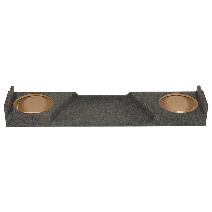 Dual 12inch Enclosure Grade A - 5/8inch MDF Construction Charcoal Carpet Covering Terminal Cup Connectors Downfiring Design Underseat Enclosure Dimensions: 53.25inch Wide, 9inch Tall, 5.25inch Top, 9inch Bottom Brand NEW