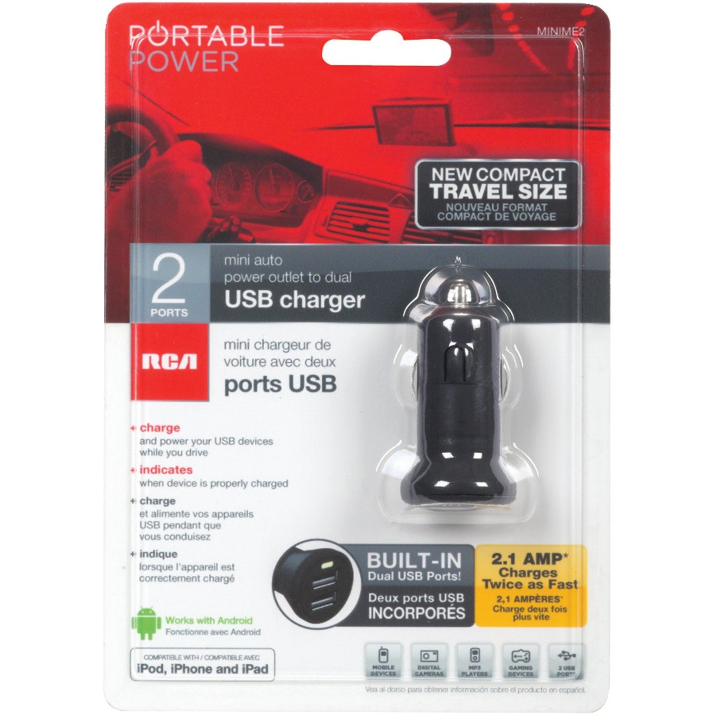 Put mobile device charging right where you need it in your car with the RCA 2.1-Amp 2-Outlet DC to USB Mini Power Adapter that mounts flush to your dash. Just plug it in to your car power adapter and leave it there for clutter-free anytime charging.