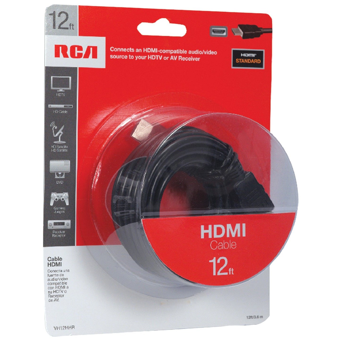 This RCA HDMI Cable comes in a 12 ft. length. It can be used to connect an HDMI-compatible audio/video source to your HDTV. it carries uncompressed high-definition video up to 1080p and digital audio signals.
