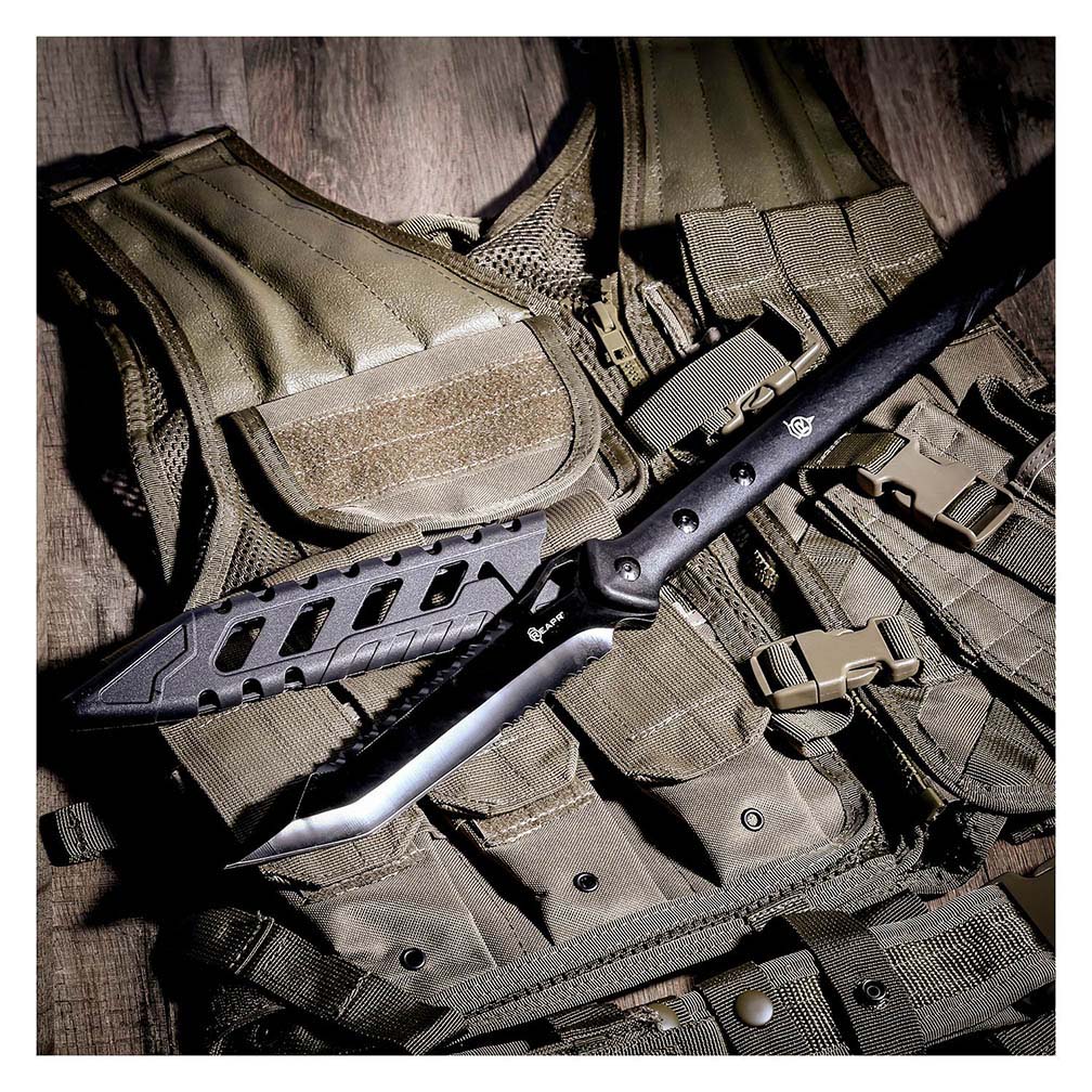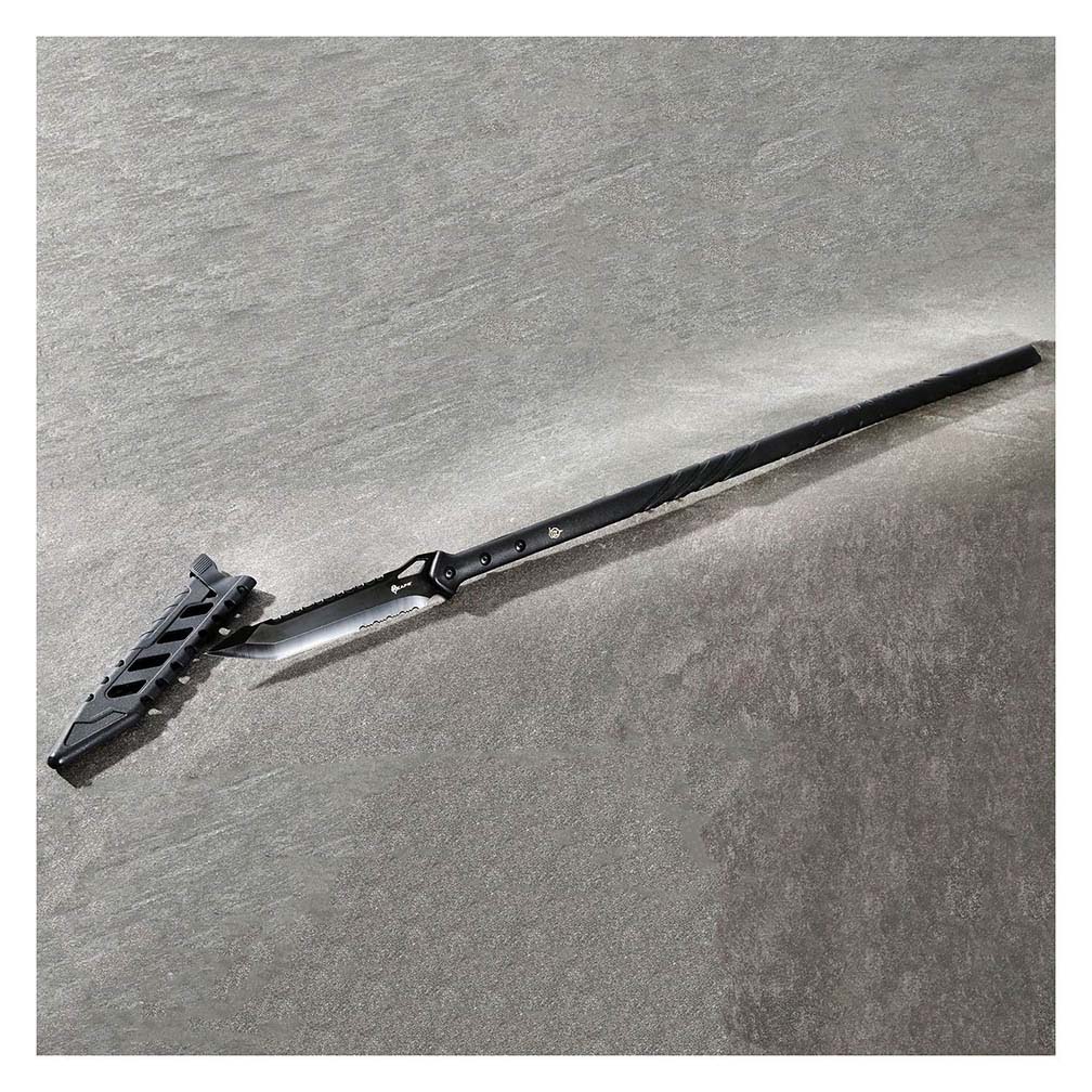 IT’S SURVIVAL OF THE FITTEST. BE THE PREDATOR, NOT THE PREY, WITH THE REAPR TAC JAVELIN SPEAR. DESIGNED FOR PIERCING, PRYING, IMPALING, STICKING, AND BREACHING JOBS, IT’S THE ULTIMATE TACTICAL SPEAR. IT FEATURES A 2CR13 STAINLESS STEEL PRECISION CAST HEAD AND 8? PARTIALLY SERRATED CLIP POINT BLADE WITH A BLACK OXIDE FINISH. WHEN LIFE CALLS FOR A TACTICAL RESPONSE, TAKE IT ON WITH REAPR BY SHEFFIELD.