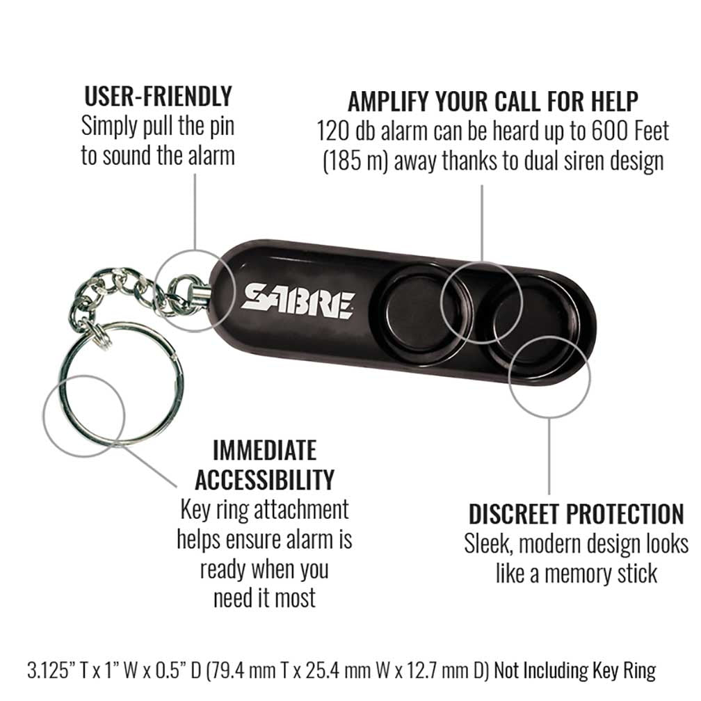 Sabre PA01 Personal Alarm with Key Ring - Black