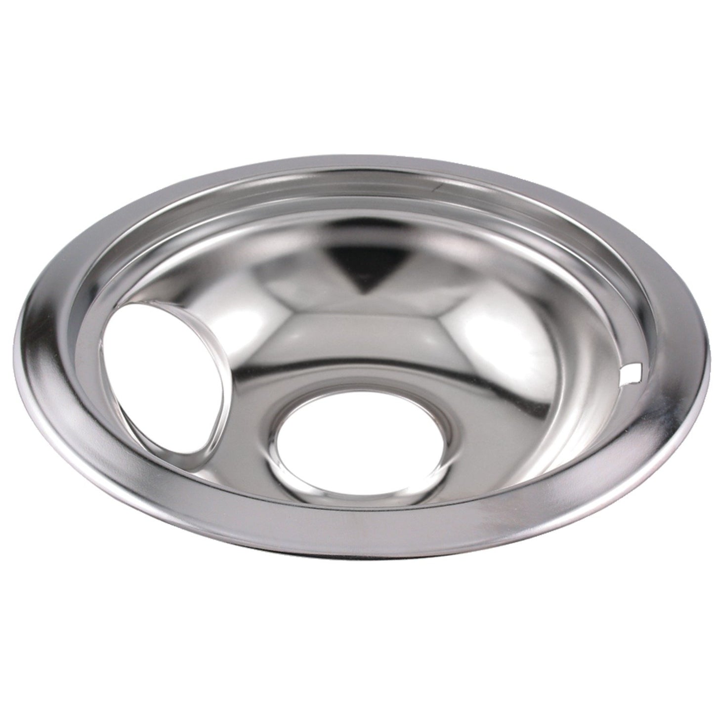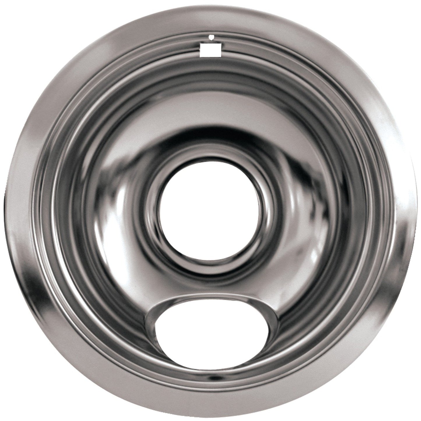 This heavy-duty Universal Chrome Drip Pan (6 in.) from Stanco Metal Products fits most electric ranges with a plug-in cooking element, including GE and Hotpoint.