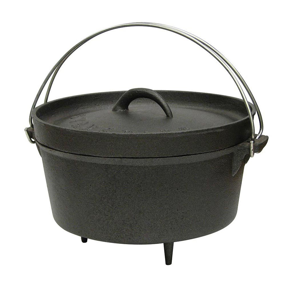 Dutch ovens with legs and rimmed lids are recommended for open fire or charcoal cooking