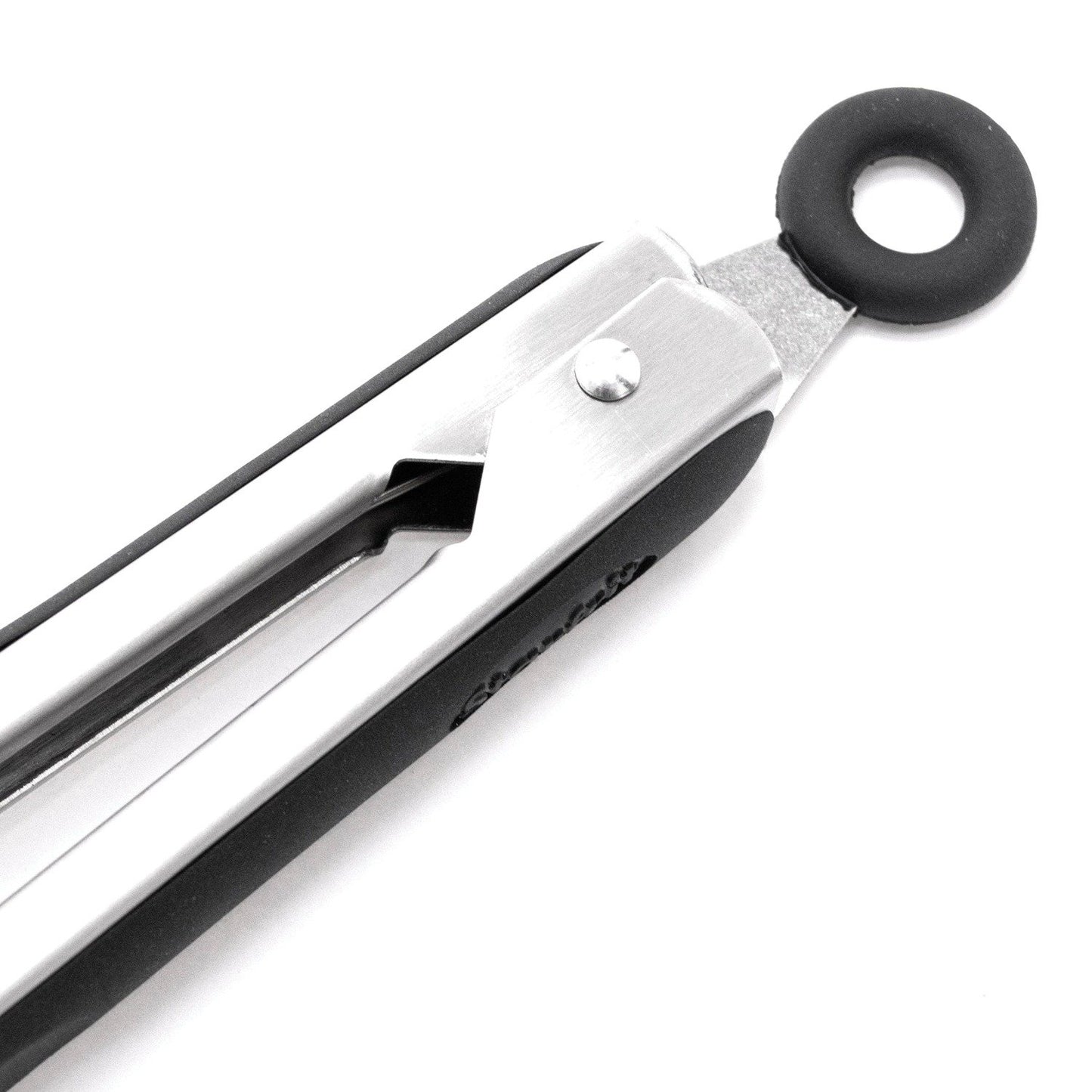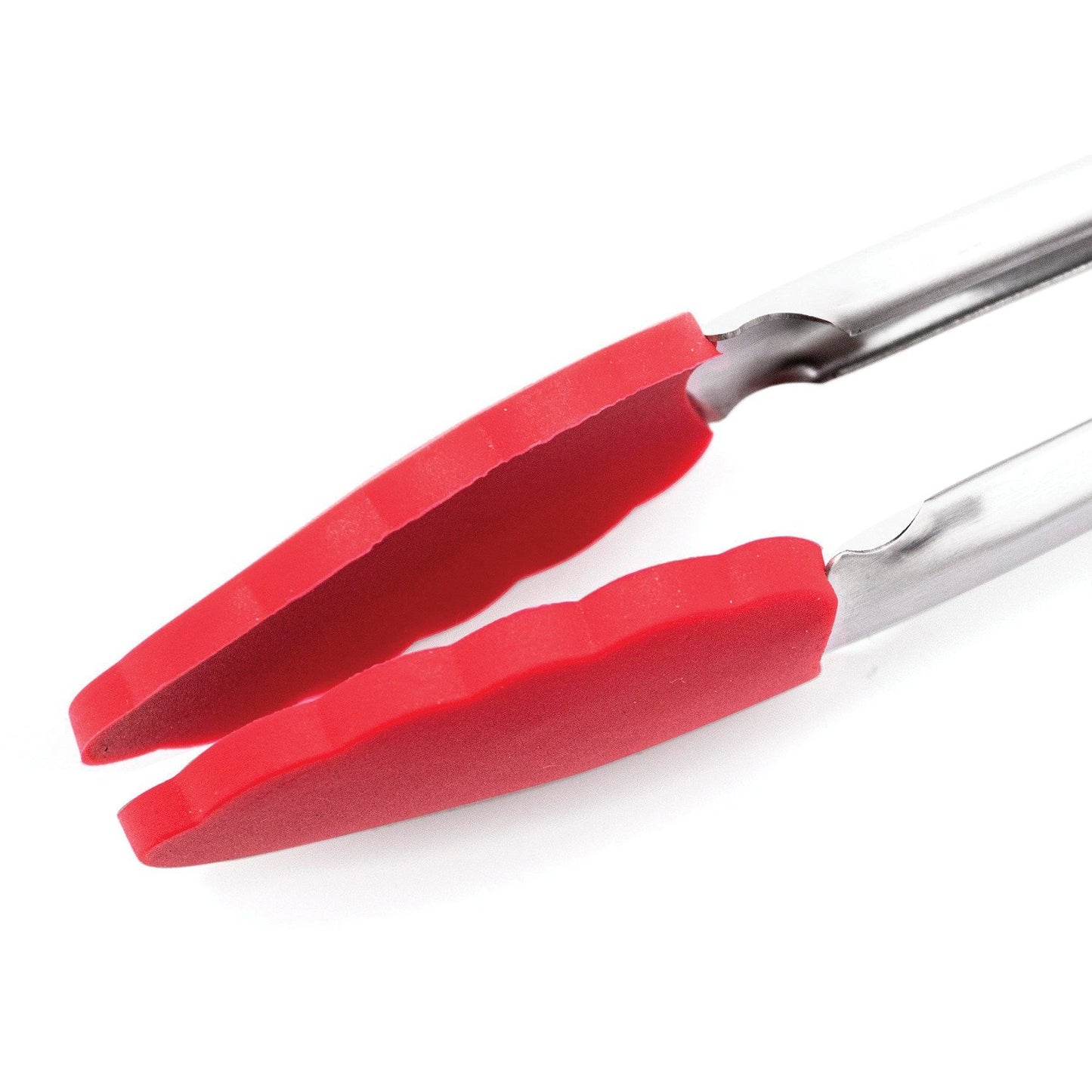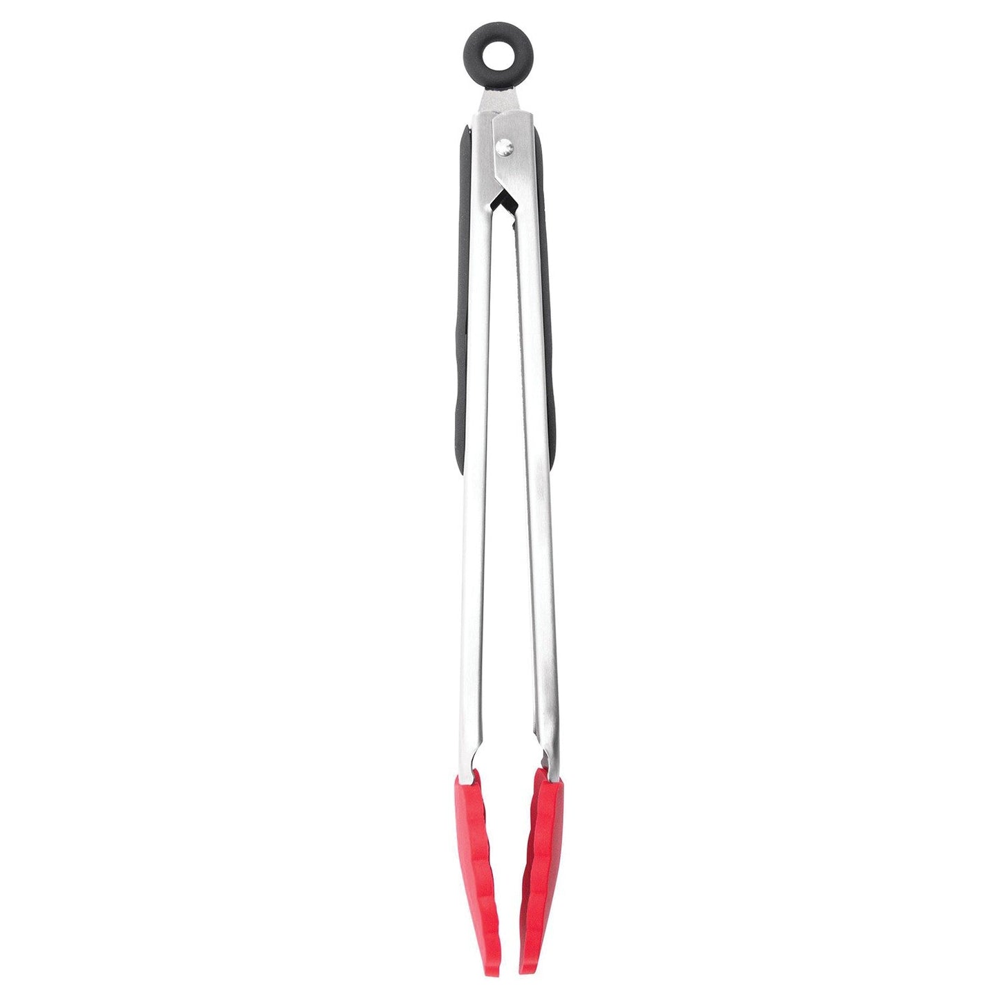 The Starfrit Red Silicone 12 in. Tongs are ideal for outdoor BBQs or indoor cooking in the kitchen. They won't scratch the surface of nonstick pots and pans. And their integrated locking system allows them to close for space-saving storage in your kitchen drawer.
