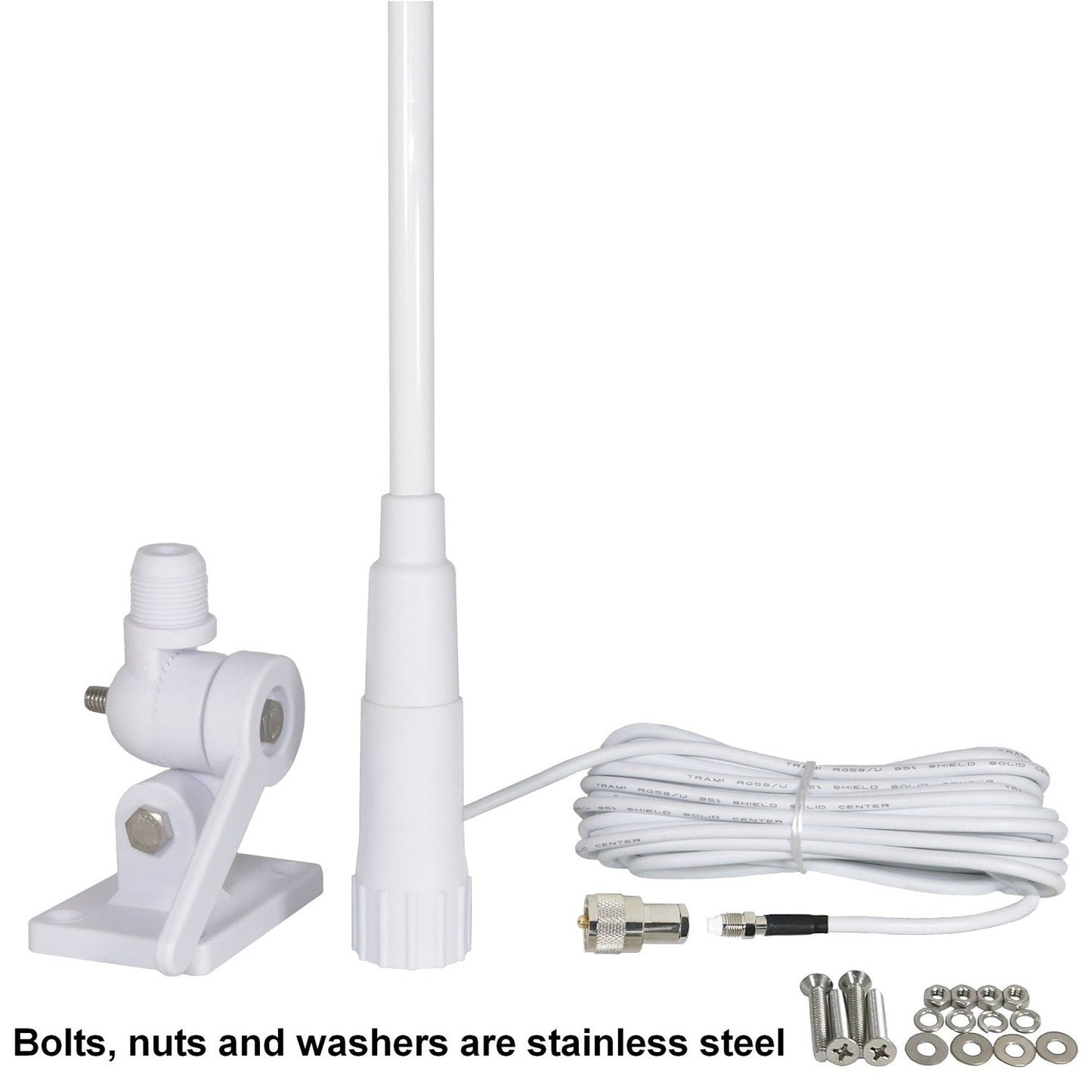 The Tram 46 in. VHF Marine Antenna is built to last with its heavy-duty fiberglass construction and stainless steel hardware! It's portable and easy to use with its 20 ft. RG-58 cable and an easy screw-off PL-259 connector for small hole installation.
