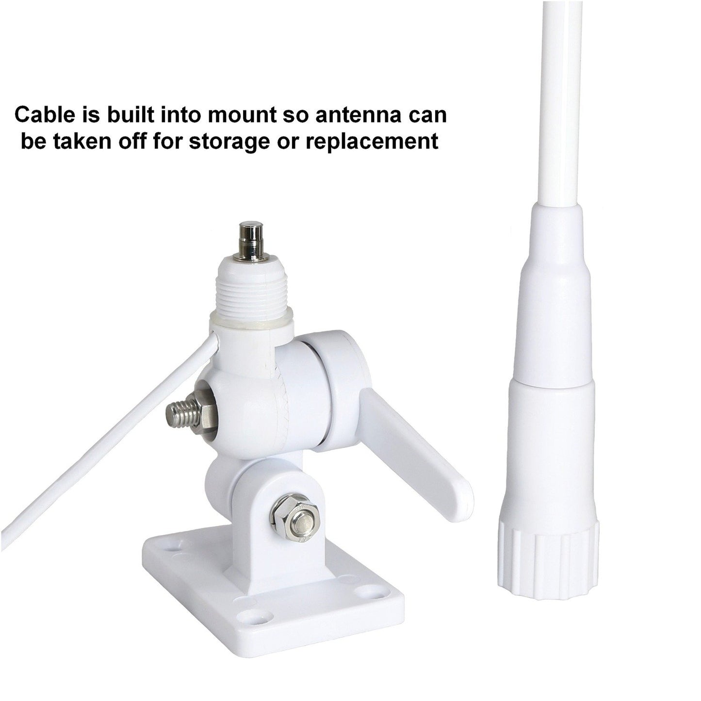 Tram provides premium antenna components that provide functionality and durability of the antenna to deliver quality communication connections you depend on. Each antenna model is carefully planned and developed to ensure great transmission over many uses. The 46 in. VHF 3 dBd Gain Marine Antenna with Cable Built into Ratchet Mount will offer premium service for many years to come.