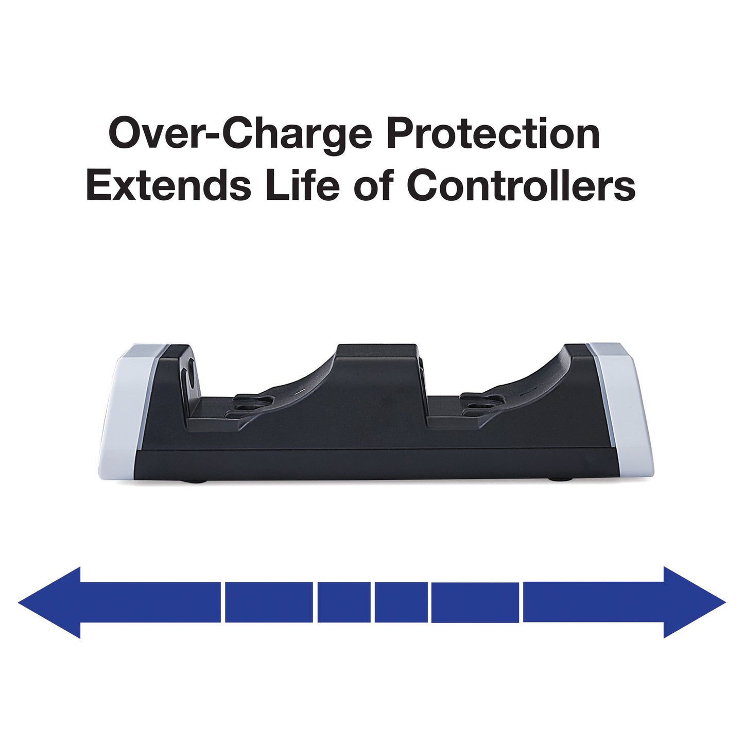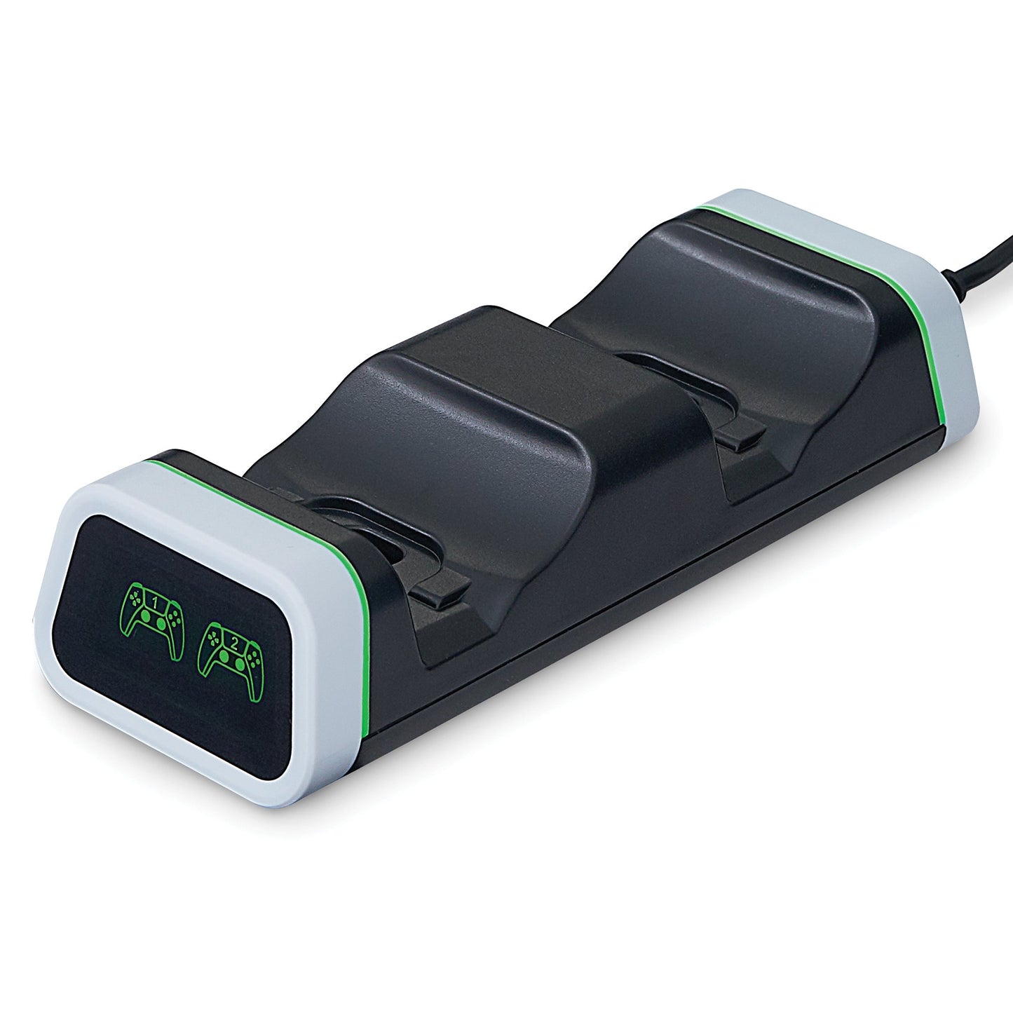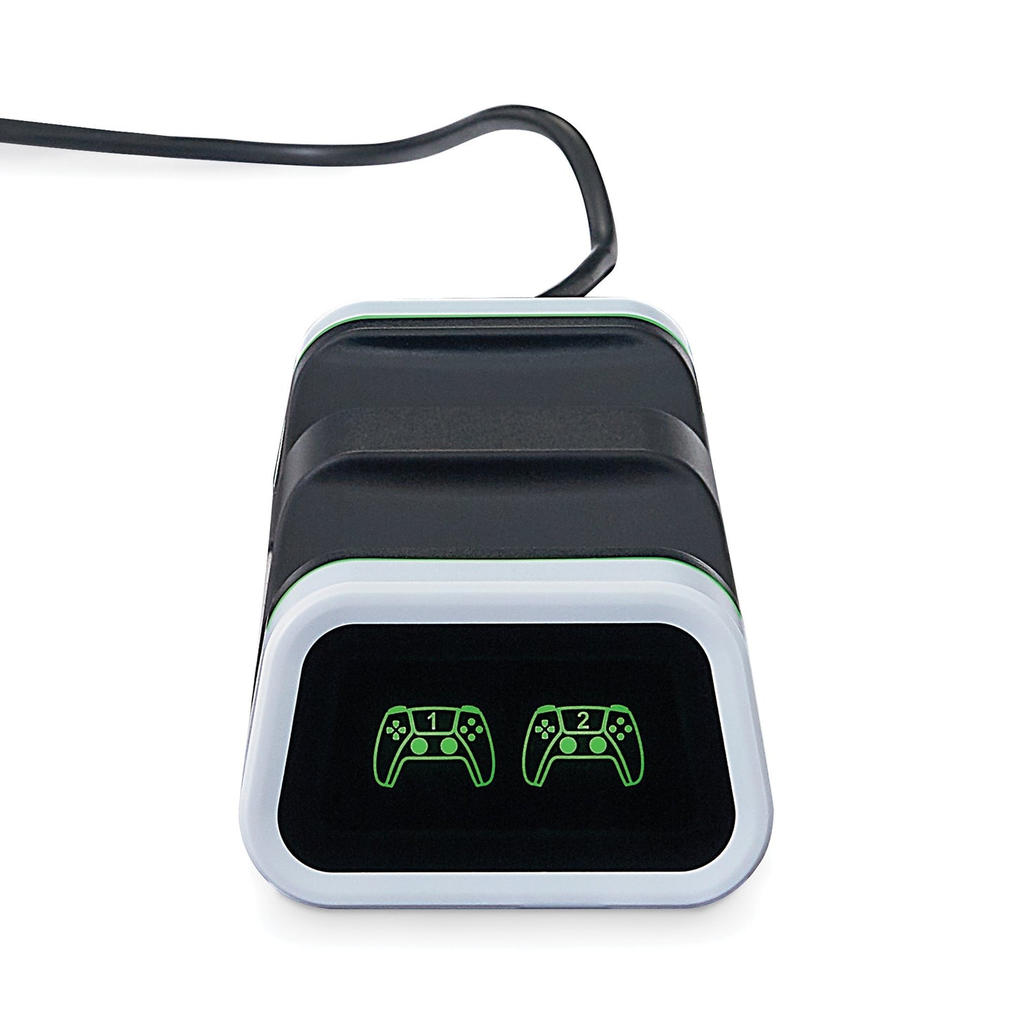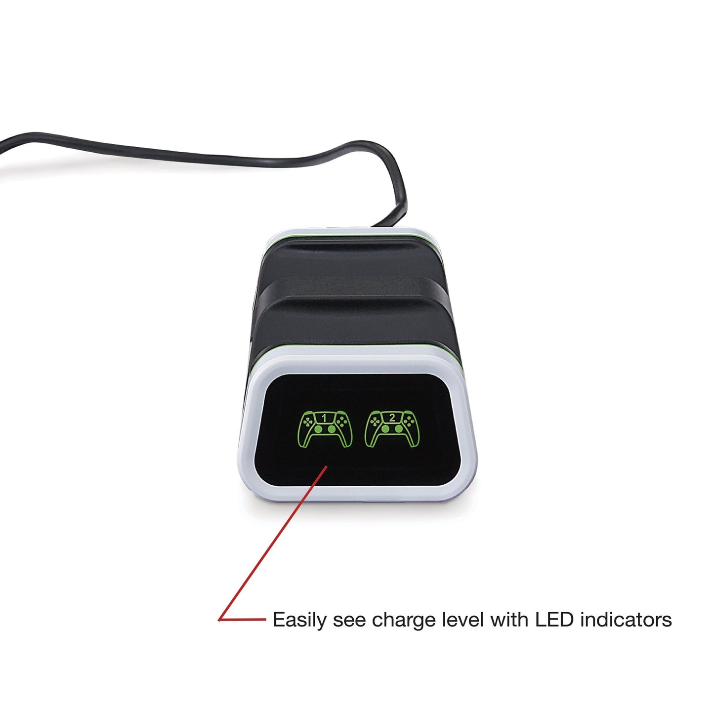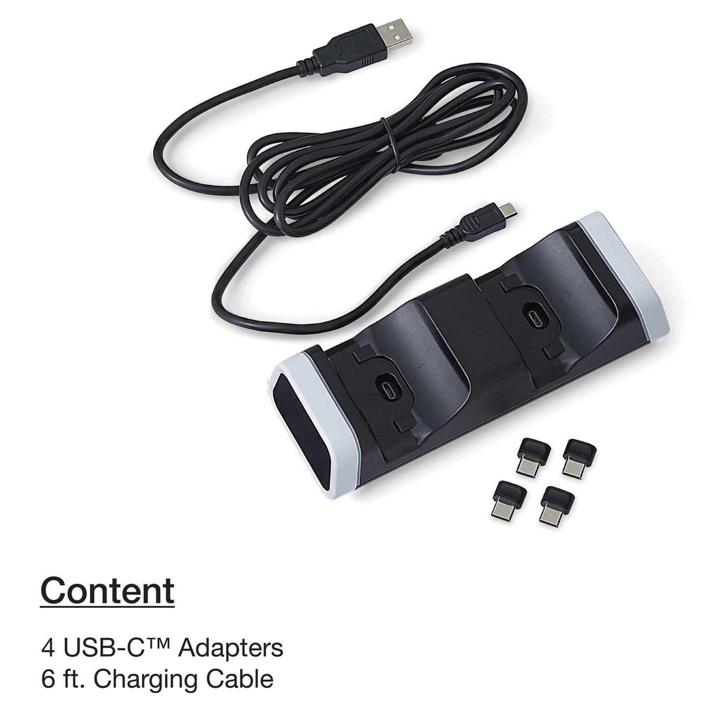 Charge your PS5 controllers quickly and easily with the Verbatim Dual Charging Stand for PlayStation 5 DualSense, designed for use with PlayStation 5 DualSense wireless controllers. This charging stand easily charges 2 controllers simultaneously, letting you get back to your game faster. LED charging status indicators let you quickly see the charging level of each controller. Overcharge protection extends the life of your controllers by stopping charging once the controllers are fully charged. And the included USB-C adapters, used to connect your controller to the charging stand, protect your controllers' USB-C port from accidental damage. A compact design and included 6 ft. charging cable means this stand easily fits into your existing setup.