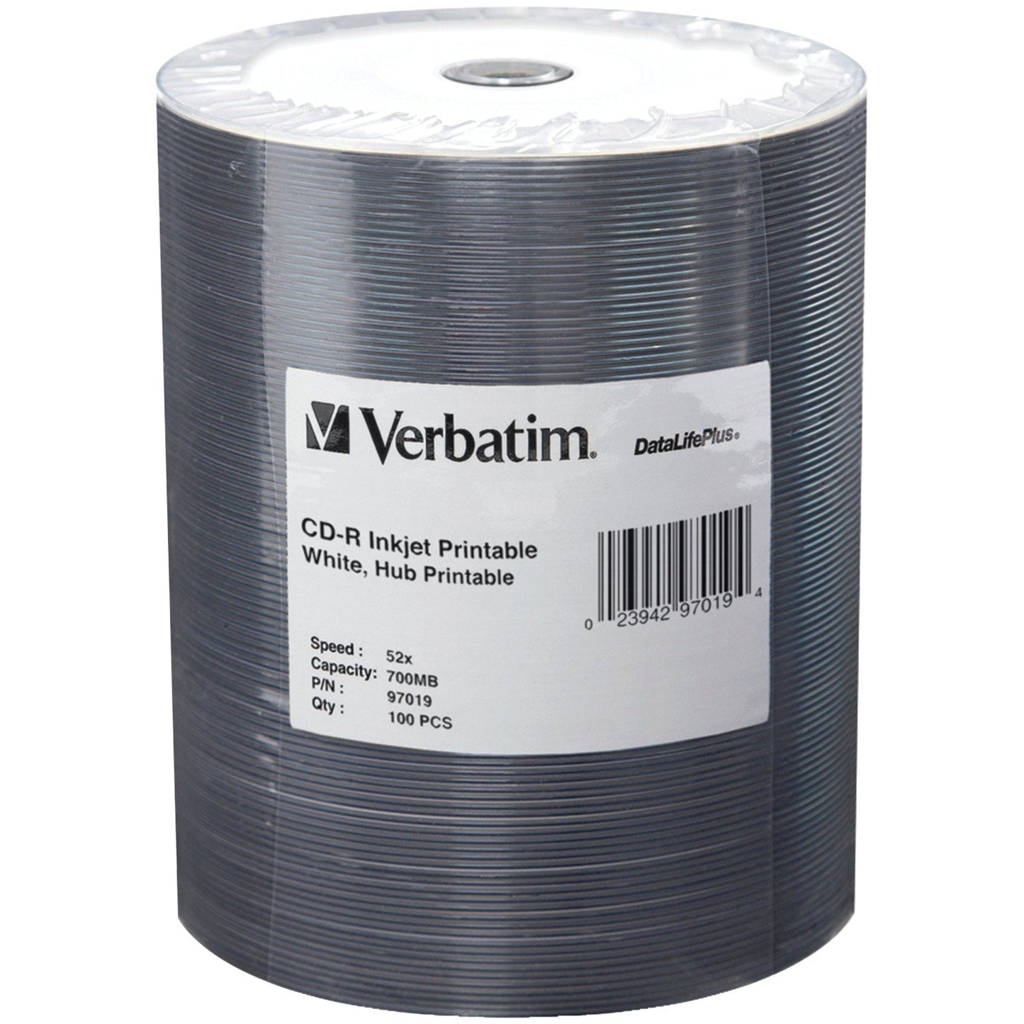 Verbatim 97019 80-Minute/700MB 52x White Inkjet Hub Printable CD-Rs, 100pk