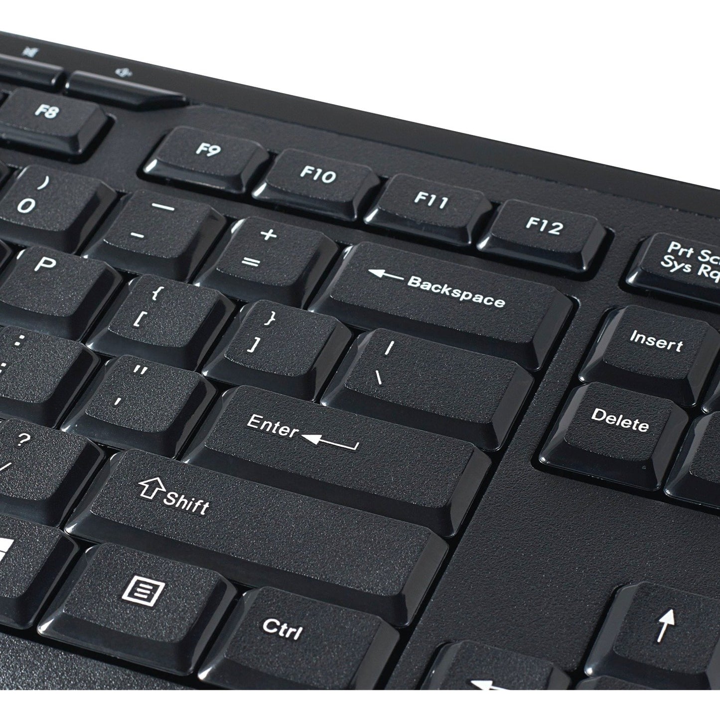 Say goodbye to noise and hello to silence with the Verbatim Silent Wireless Mouse and Keyboard. Using new silent technology, silent click switches, and rubber covers, these Verbatim products are truly silent. The nano receiver is small enough to plug in and leave connected and the 2.4 GHz wireless performance allows for a lag-free connection. The Silent Mouse features Blue LED technology, allowing users to point and click on more surfaces than other mice - from a glass table to the granite kitchen counter! The Silent Keyboard features a full numeric keypad and full-size function keys, all within a slim, efficient design.