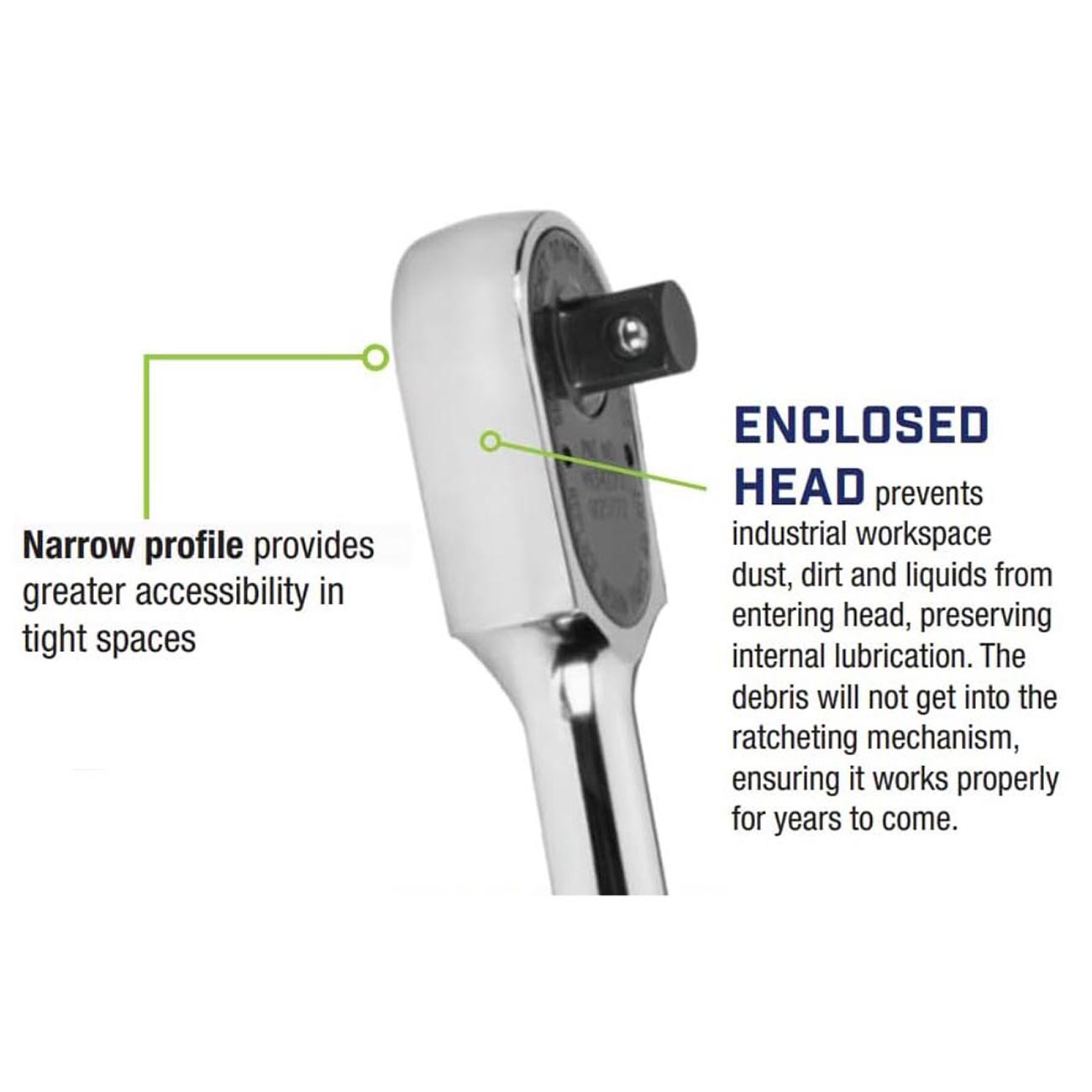 Williams 1/2"e; Drive Sealed Narrow Head Ratchet, 36 Teeth