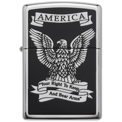 Zippo 28290 Windproof Lighter Black & White Americana Eagle, High Polish Chrome