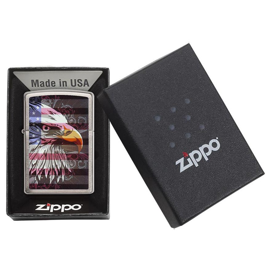 Zippo 28652 Windproof Lighter Eagle Flag, Brushed Chrome
